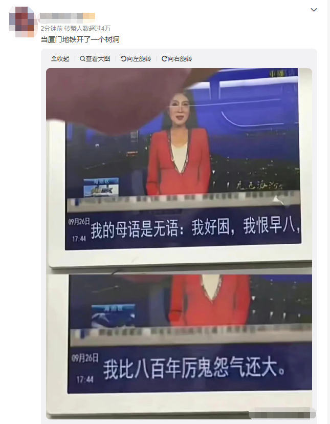 厦门地铁开了个树洞,各种疯批语录喷涌而出,汇集成势。白天容光焕发精神抖擞的打工人,突然人均升华赛博诗人,口吐莲花。