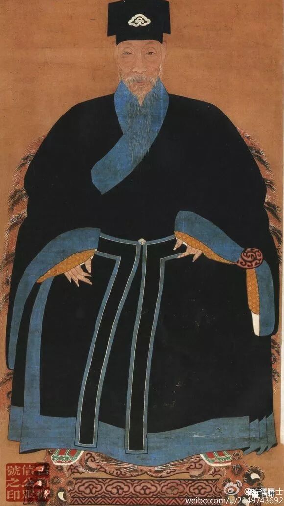 注7:王鏊(1450-1524),字济之,吴县人,成化间乡试、会试具第一,授编修。正德元年(1506)进户部尚书文渊阁大学士,加少传兼太子太传。当时太监刘瑾专权,排斥打击大臣,王鏊请辞返乡。这幅画像即是他退休后家居时的写照。于嘉靖三年(1524)卒于家,年75