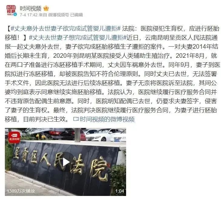 实际上,这位女性的丈夫(即孩子的父亲),早在妻子怀孕之前(1999年)就已经去世了。如今,精子、卵子和受精卵的冷冻保存技术飞速发展,甚至睾丸和卵巢等生殖腺本身的冷冻保存(实验阶段)也变成了现实。通过冷冻,可以停止(或推迟)精子、卵子和受精卵的“时间”。