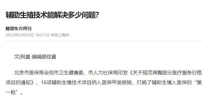 ▲2022年,北京市医保局将16项辅助生殖技术项目纳入医保甲类报销。