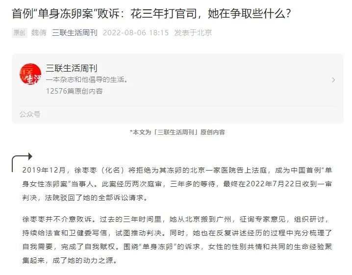 ▲在中国,也出现了单身女性想要冷冻卵子“直到想要生育之时”的案例。