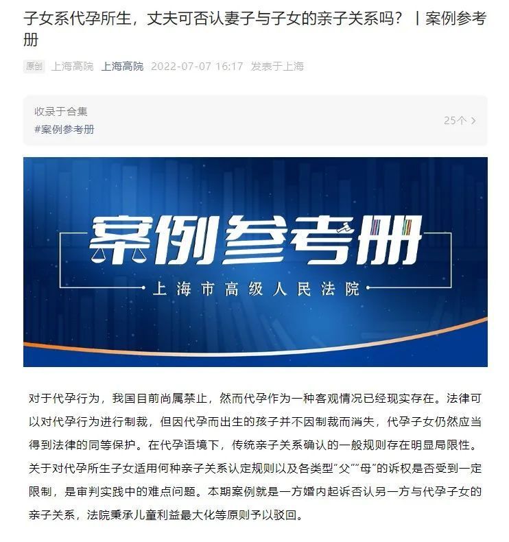▲2022年,基于儿童利益最大化原则,上海高院就对因代孕产生亲子关系纠纷的案例进行了判决。