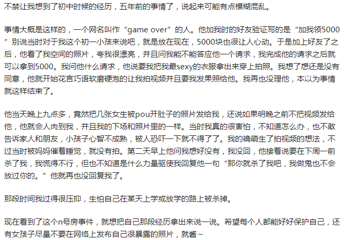 godgod以这两种方式,掌控了不少女生,并将获取的各种色情影像,甚至儿童影像,在其创建的不同房间里疯狂传播,围观者众多。