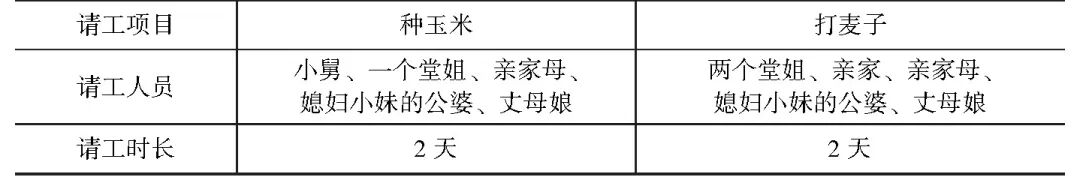 表1 云南N村A自然村会计2017年上半年两次请帮工统计表