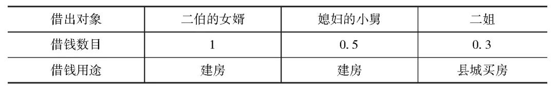 表3 云南N村A自然村会计2016年借钱给亲戚统计表