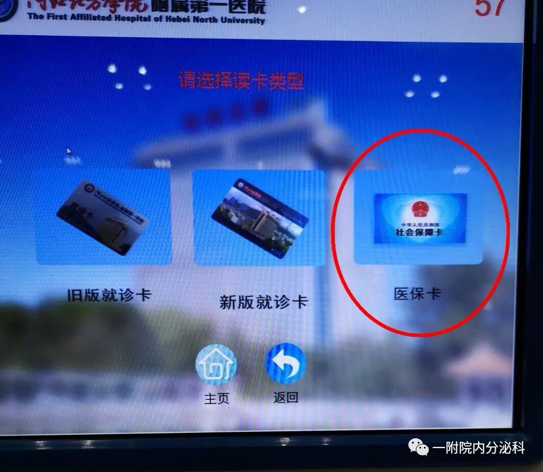 点击屏幕上的新/旧就诊卡图标→把就诊卡放在不同的读卡区域。