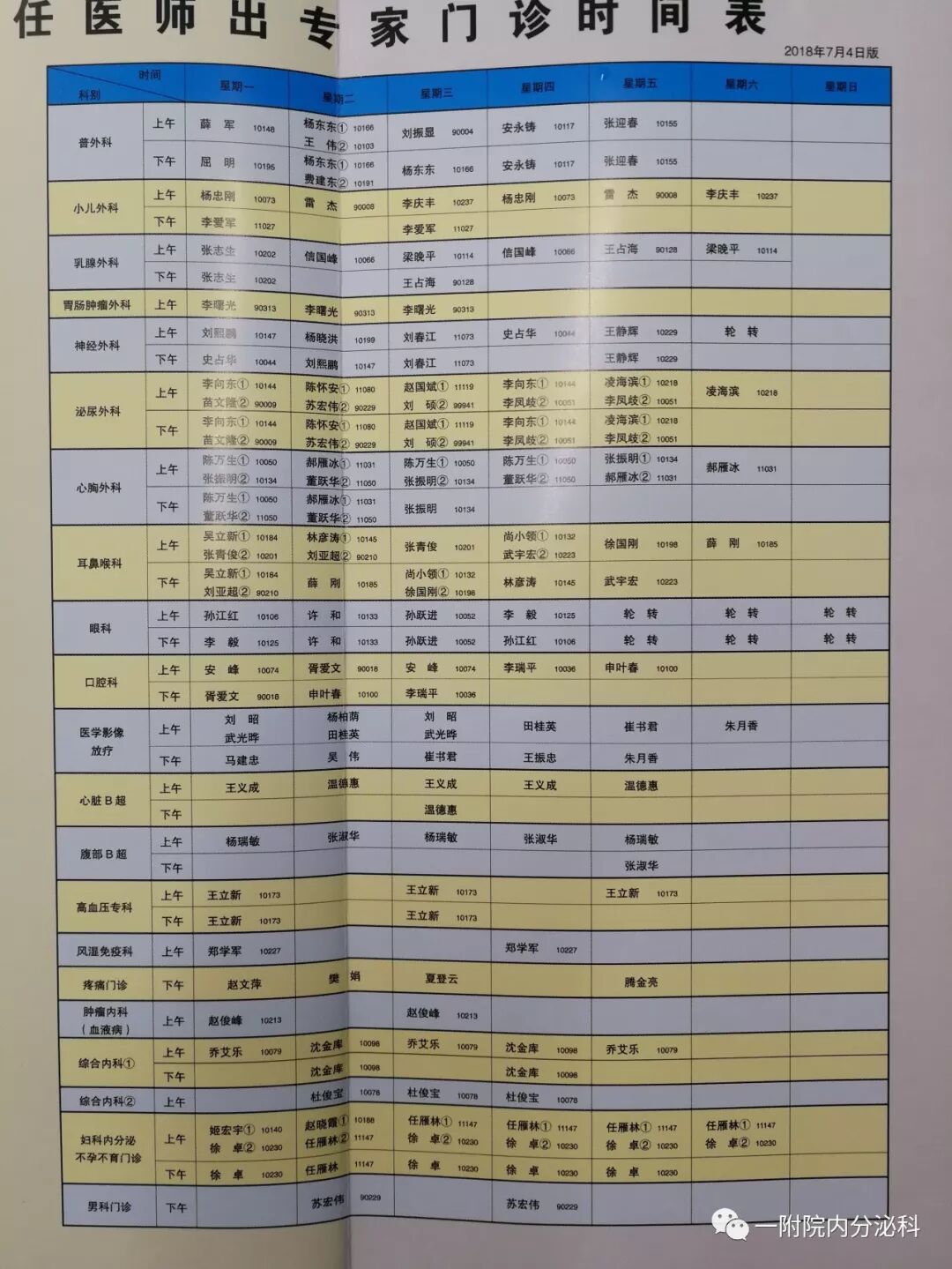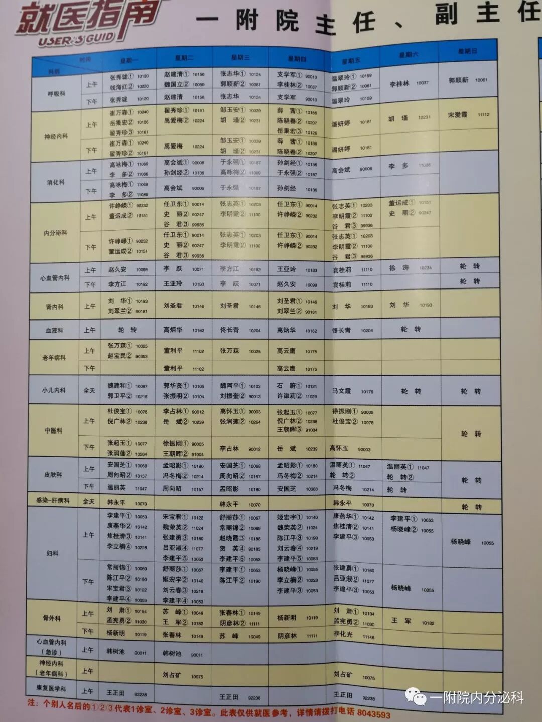 一附院内分泌科门诊最新安排周一全天周二全天周三全天周四全天周五全天周六上午