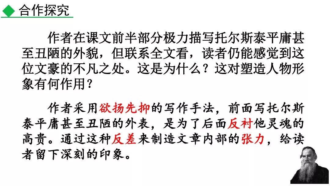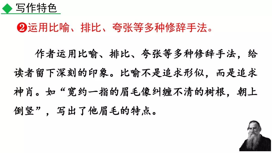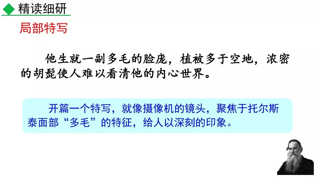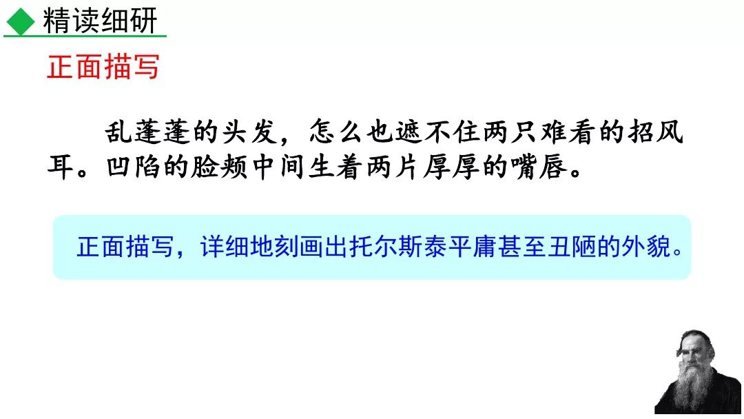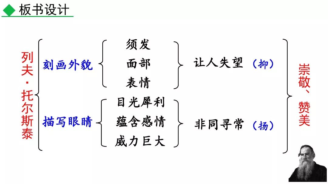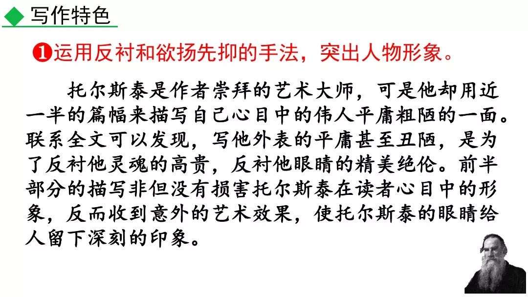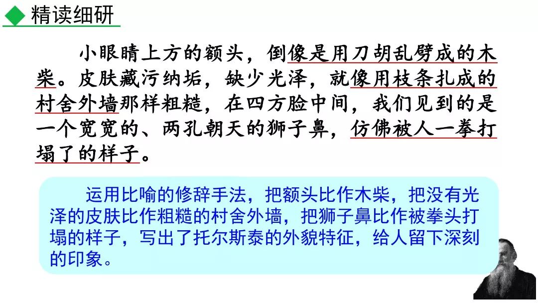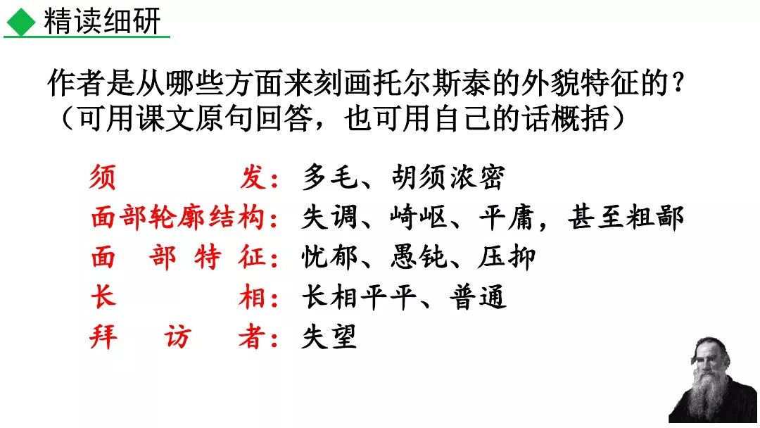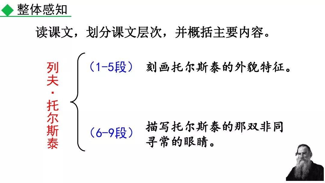 第一部分(①-⑤):刻画托尔斯泰的外貌特征。