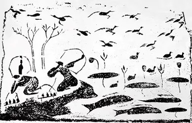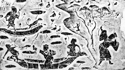 单靠种田维持生计是不够的,百姓继承了远古时代就有的渔猎技术,在淮南等适宜地区进行着捕鱼、打猎。擅长弯弓射箭的,展现着神射手的姿态;