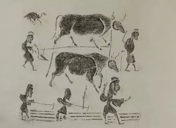 在电影中,我们能够看到“二牛抬杠”的全新耕地方式,这在之前是极为少见的。用一根长辕,在两端装衡,衡下驾两牛,大大加快了耕地速度,也为之后出现的“一牛挽犁”的“犁耕”。提供了动力。
