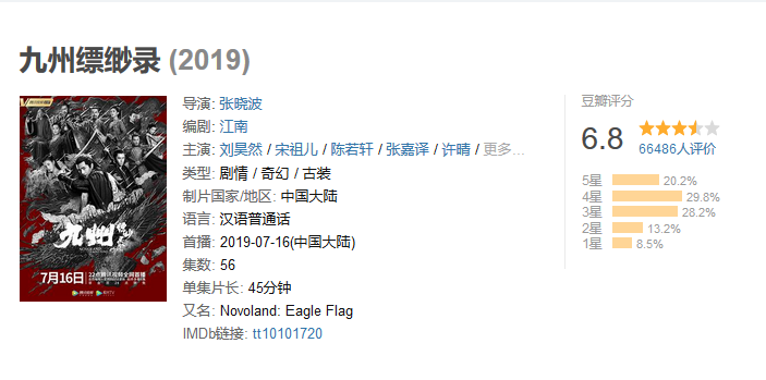 这是网友力荐的一部剧,据说电影质感、服化道、演员演技都是上乘!4.《九州缥缈录》