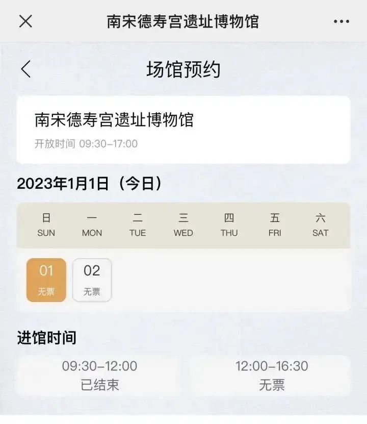 自2022年11月22日试开放以来,南宋德寿宫遗址博物馆一直深受社会关注和游客喜爱。新年第一天,南宋德寿宫遗址博物馆微信公众号的预约通道显示,1月1日至2日两天已暂无余票。因为“德寿宫”实在太红,很多杭州市民依然表示“一票难求”。
