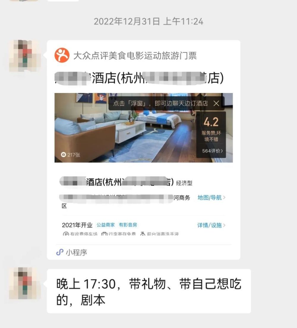 杭州年轻人选择酒店跨年、聚餐。网友提供