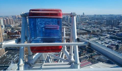 摩天轮旋转一周所需时间为28分钟,到达最高处时,周边景色一览无余,甚至能看到方圆40公里以内的景致。