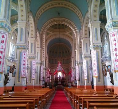 天津市最大的天主教堂,也是天主教天津教区主教座堂,典型巴洛克式风格的建筑。