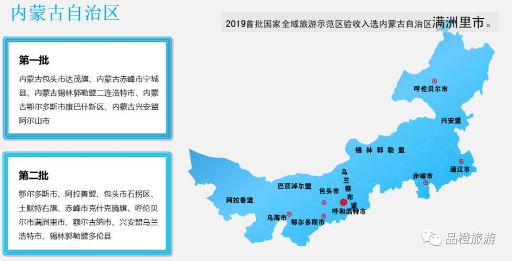 在国家全域旅游示范区创建名录中,内蒙古自治区首批入选5个、第二批入选9家。本次有1个正式入选“首批国家全域旅游示范区”——满洲里市。