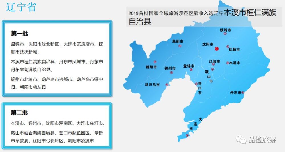在国家全域旅游示范区创建名录中,辽宁省首批入选11个、第二批入选9家。本次有1家正式入选“首批国家全域旅游示范区”——辽宁省本溪市桓仁满族自治县。