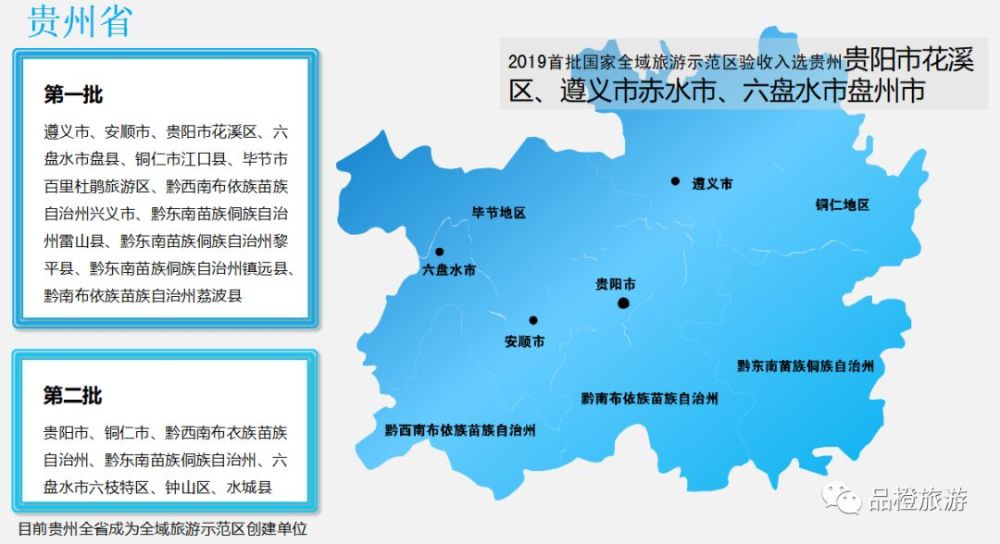 在2016国家全域旅游示范区创建名录中,贵州省首批入选11个、第二批入选7家。本次有3个正式入选“首批国家全域旅游示范区”,分别是贵阳市花溪区、遵义市赤水市、六盘水市盘州市。