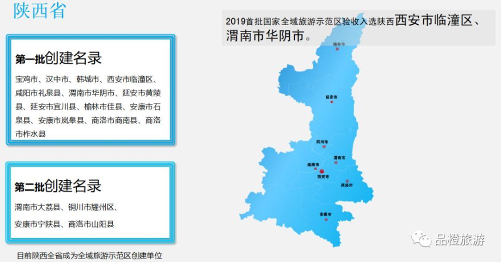 在2016国家全域旅游示范区创建名录中,陕西省首批入选13个、第二批入选4家。本次有2个正式入选“首批国家全域旅游示范区”,分别是西安市临潼区和渭南市华阴市。