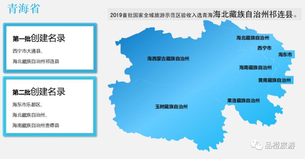 在2016国家全域旅游示范区创建名录中,青海省首批入选2个、第二批入选3家。本次有1个正式入选“首批国家全域旅游示范区”,分别是海北藏族自治州祁连县。