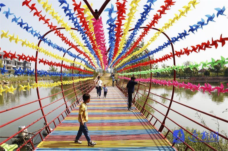 10月2日,游客在泗洪县朱湖镇一处休闲度假区游玩。近年来,泗洪县积极建设生态宜居的美丽乡村,大力发展生态休闲观光农业和乡村旅游,因地制宜打造多个农旅融合综合体,为游客提供观光、休闲、教育、娱乐等多种服务,助力乡村振兴。许昌亮(泗洪)
