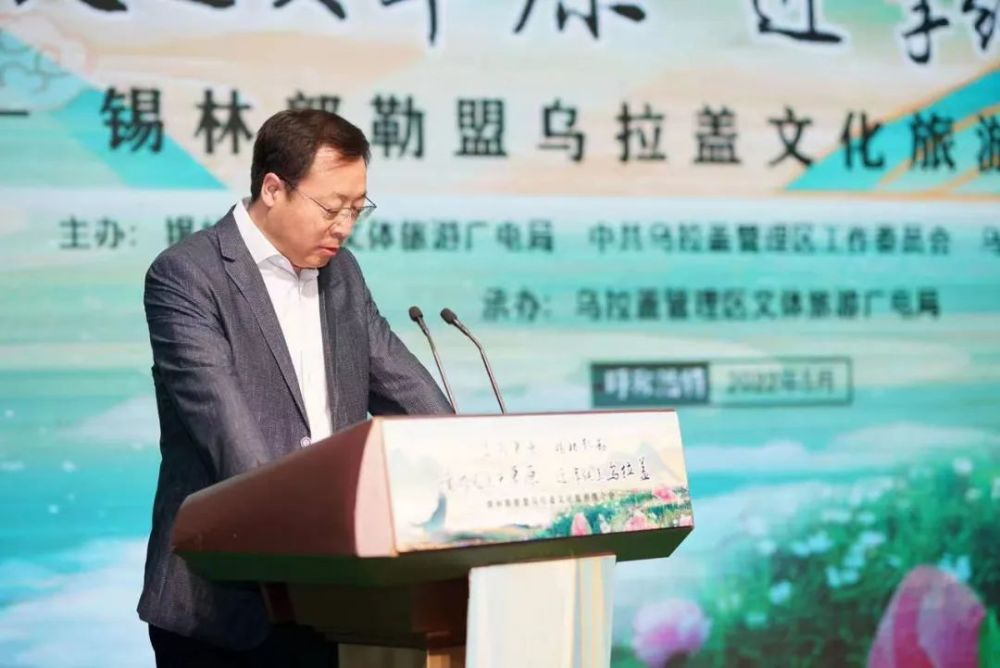 乌拉盖管理区党工委书记 乔建强在致辞中说:“近年来,乌拉盖管理区秉承‘绿水青山就是金山银山的理念’,坚定不移走生态优先,绿色发展的路子,大力发展原生态草原文化全域旅游业,积极创建国家生态文明示范区等荣誉称号,成功打造了‘天边大草原·纯美乌拉盖’的旅游品牌,吸引国内外游客纷至沓来。”同时他还邀请广大游客相约乌拉盖,共享青山绿水,共创美好未来。
