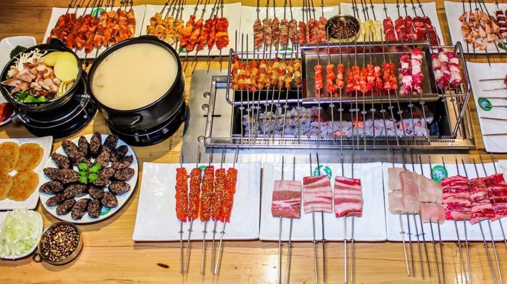 在延吉,烤串的风味也被重新定义了,丰茂烧烤属于全自助,每桌一个烤炉,完全都是生肉串上桌,从头到尾都自己来。
