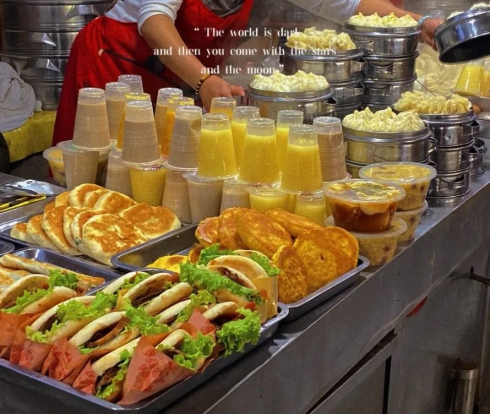 早餐种类也特别多,油条豆浆、豆腐脑、馄饨小笼包等传统北方早点,整体便宜又好吃,如果不是只有一个胃,真想每样都去尝一遍!