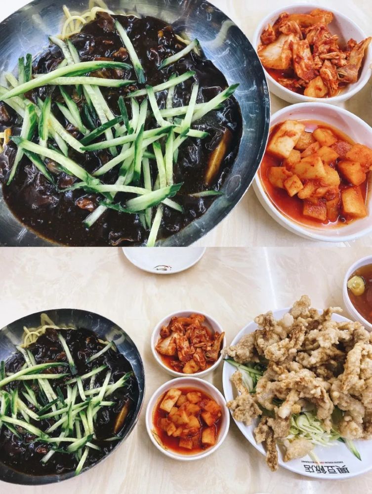 除此之外还有糯唧唧的炒年糕、其他城市少见的米肠、酱香浓郁的韩式汤饭以及夏天必备的朝鲜冷面和看剧的标配——炸酱面等等。