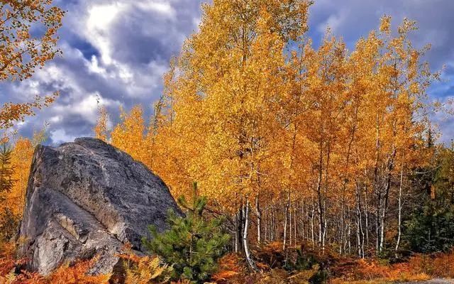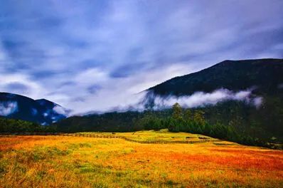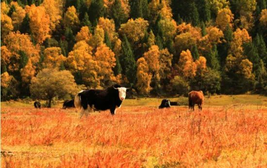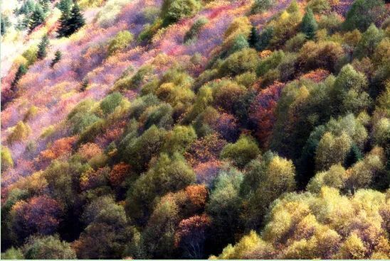 原始灌木丛和茂密的云杉、松树林一望无际,高原草甸溪流蜿蜒,深秋树叶都绽放缤纷,释放出生命的美丽。