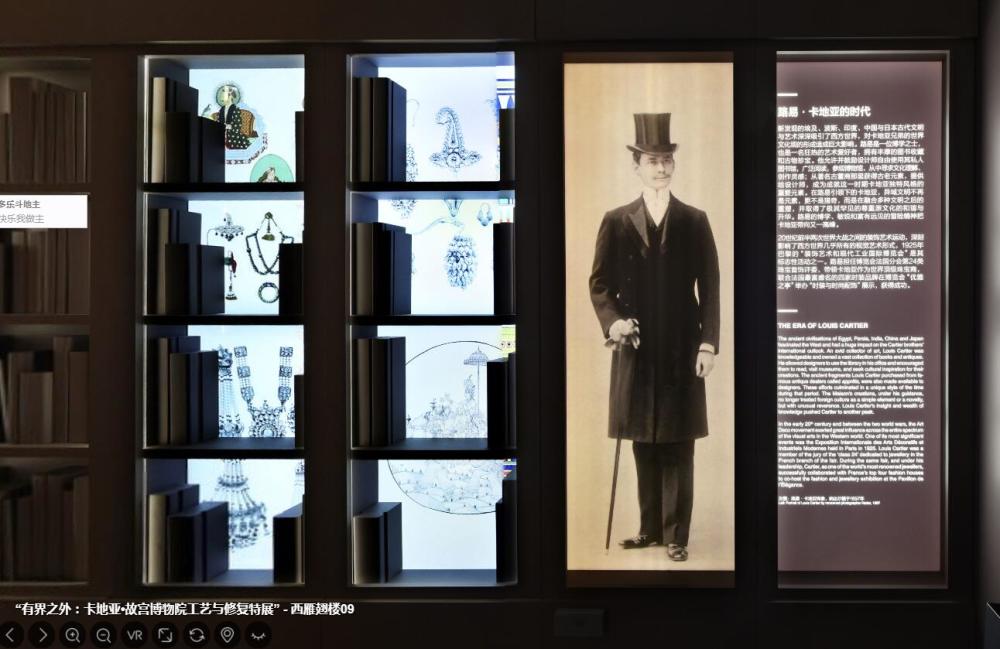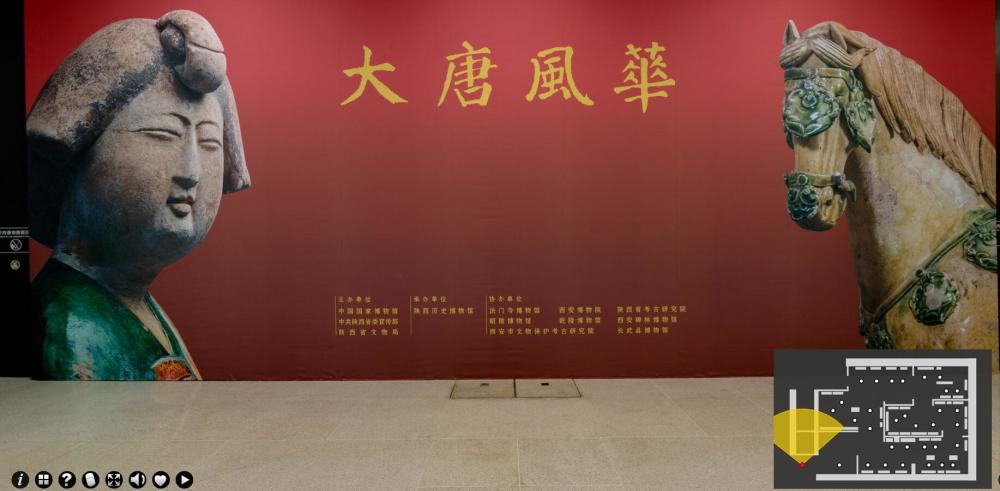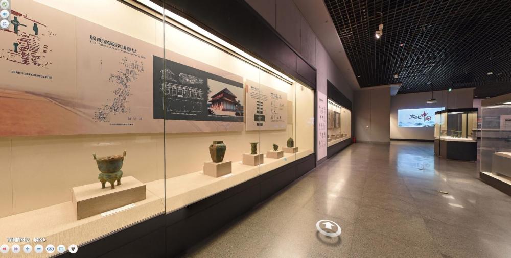 点进云观展页面,可通过鼠标或触屏操作,360度全景看展,一览展览全貌。还可放大、缩小场景,细致观察每一件展品。
