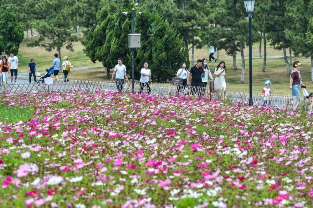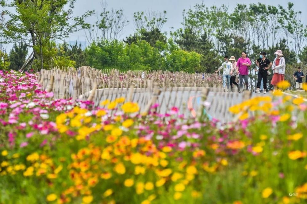 夏天的小麦岛,波斯菊、天人菊、虞美人等20多种花卉盛开,五颜六色交织成缤纷花海,令无数游人陶醉。