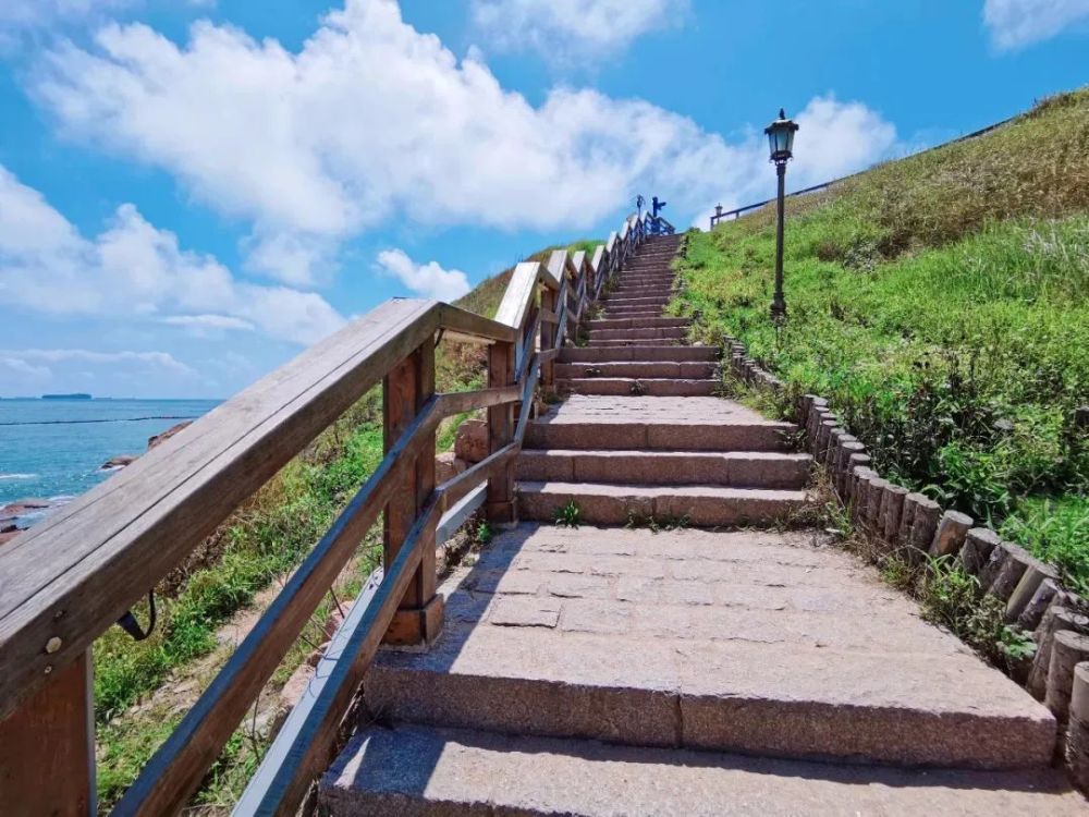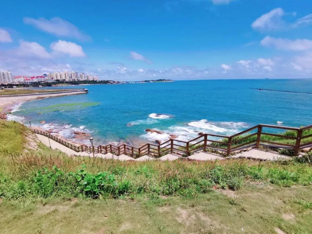 小麦岛被人们称为青岛“小垦丁”,有着韩式小清新的岛屿风情,棕色的木栈道、翠绿的小山坡、湛蓝色的大海……每一处充满着生机与活力,出片率非常高。