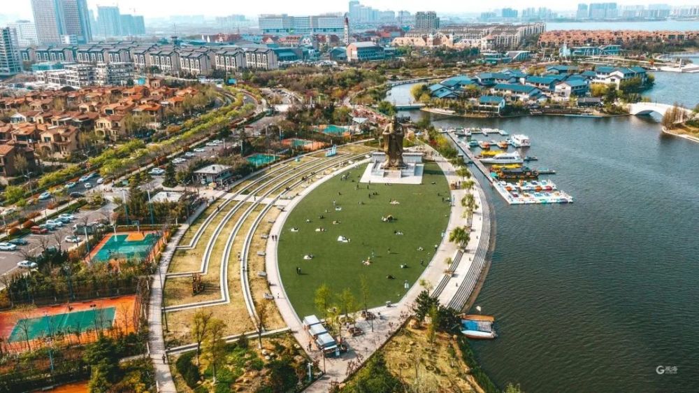 青岛少海风景区,612.5公顷的面积,是山东省第一家“国字号”湿地公园,板桥镇、慈云寺、万佛塔、市舶司……一系列仿古建筑唯美精致,如一颗颗明珠点缀其间,自然景色与建筑、历史有机结合,相得益彰。