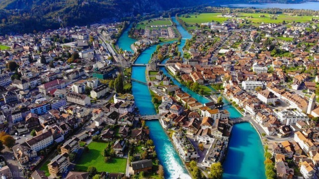 因特拉肯坐落在图恩湖和布里恩茨湖之间,因气候温和湿润,四季分明,山清水秀,风光旖旎而备受世人喜爱,有‘天堂小镇之美誉’,是瑞士乃至欧洲最古老的旅游和疗养胜地之一,每年世界各地慕名来这里观光、休假的人络绎不绝。