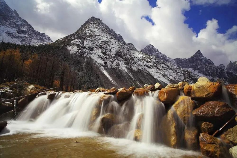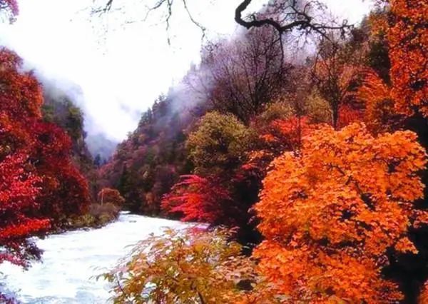 米亚罗的毕棚沟被称为“小九寨”,“亭亭玉立”的四姑娘山脚下,三千里红叶装饰着三千里的江山。泉涌有温泉、沟沟有秋色、沟沟有融雪溪水蜿蜒,此湖光山水,宛若上帝的调色板。