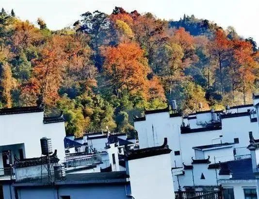 每到深秋,长溪村前后二百多株连片生长的百年香枫树就会一片火红,高大的红枫与白墙、黑瓦、马头墙掩映为一体。