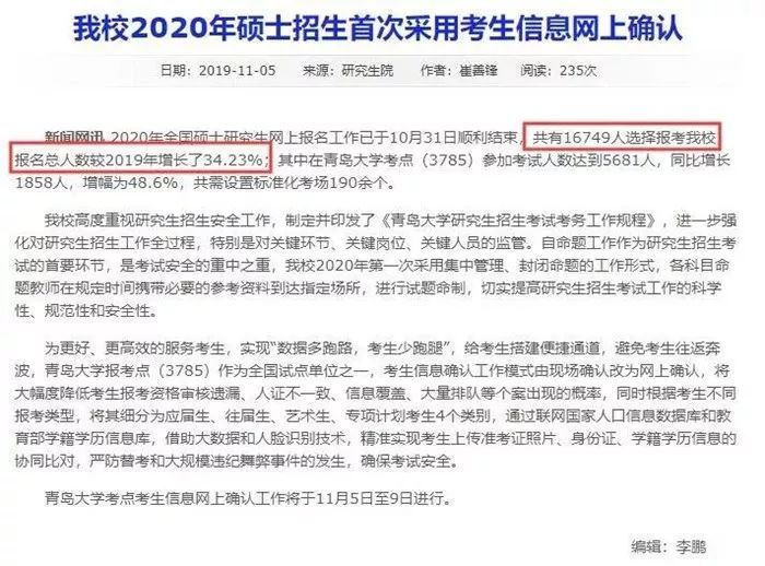 手机访问:wap.265xx.com41所院校公布2020考研报考人数!1所涨幅高达93%!