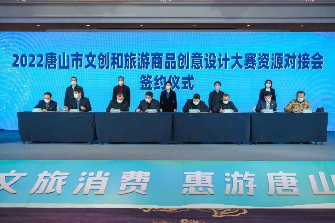 以2022第四届唐山市文创和旅游商品创意设计大赛为契机,唐山市文创设计机构和文旅企业开展了深度合作和资源对接,隆达骨质瓷有限公司与唐山山上形象设计有限公司,唐山清东陵旅游实业开发有限公司与华北理工大学,曹妃甸鹏盛水产品有限公司与唐山金品工业设计有限公司,唐山亚洲时代陶瓷有限公司与河北奇佐文化发展有限公司举行了文创产品设计研发签约仪式。