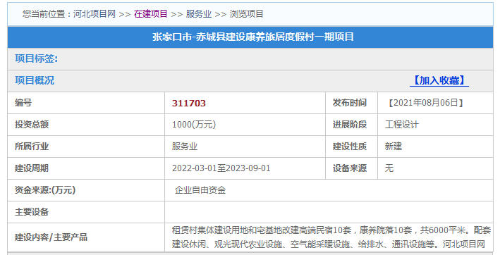 建设内容/主要产品租赁村集体建设用地和宅基地改建高端民宿10套,康养院落10套,共6000平米。配套建设休闲、观光现代农业设施、空气能采暖设施、给排水、通讯设施等。
