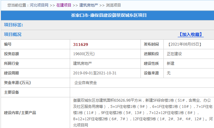 张家口市-康保县先锋(康保)房地产开发有限公司建设御景双城东区项目