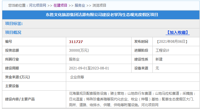 东胜文化旅游集团沽源有限公司建设老掌沟生态观光度假区项目