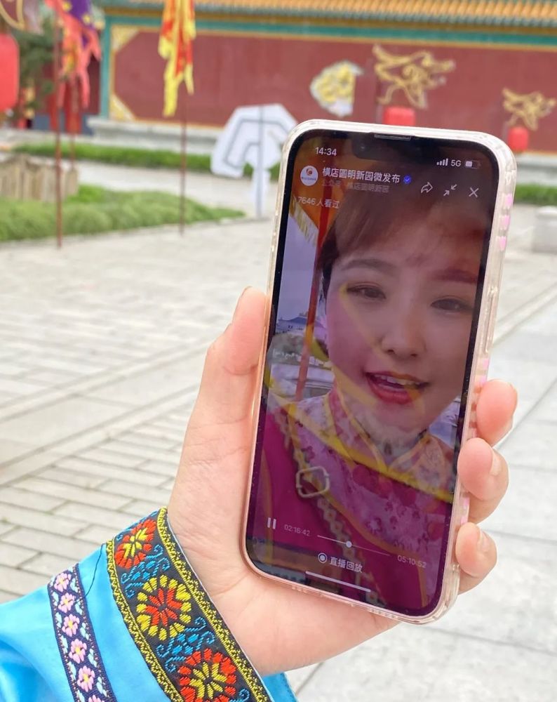除了专职的带货主播,横店影视城各大景区的导游们也发挥优势,在直播平台当起了网红“导游”,带领游客“云旅游”横店各大景区。网红导游王欢欢在横店影视城工作已经10多年,目前是横店圆明新园春苑的一名导游。5月20日,横店集团在圆明新园夏苑举办了一场集体婚礼,王欢欢和“00”一起在微信视频号及抖音平台现场直播了这场浪漫婚礼。