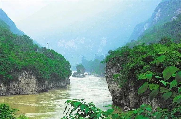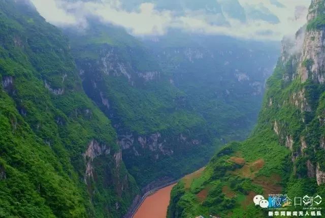 金口河大峡谷两岸奇峰突起,危岩耸立