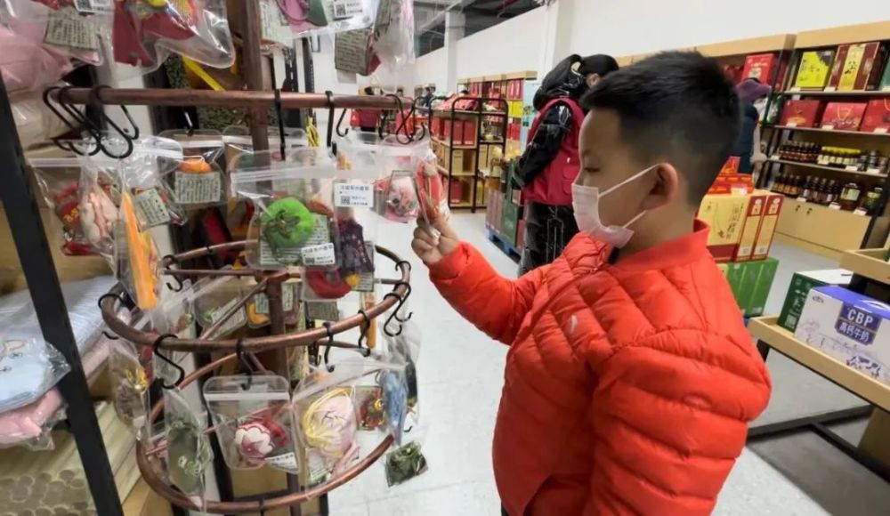 在特色展区,年货已经备齐,淮南麻黄鸡汤、西瓜酱、豆腐乳等充满浓郁地域特色的产品颇为“吸睛”,更有不少商户趁着淮河年货大集的机会,通过线上直播分享迎新春文化旅游节的喜庆与热闹。