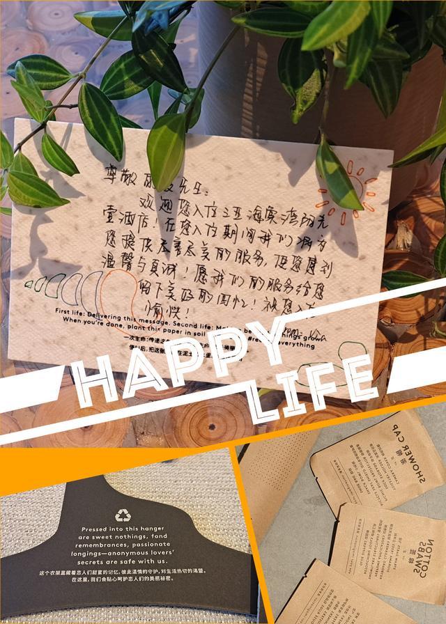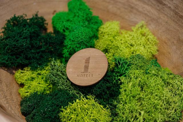 除了最基本的循环利用资源,酒店每一个细节都渗透着环保理念,每一样看似平常的小东西都被赋予了新的内涵,以壹份诚意,迎接二次新生。房卡是圆形的再生原木切片,内置芯片,可以回收利用,简单到上面只有个“1“字,逼得我瞬间记住了自己的房号。欢迎卡片在社交媒体引发热议,因为看似普通的卡片里面镶嵌了植物种子,将卡片埋入土壤就会生根发芽,几乎所有客人都会将卡片带走。