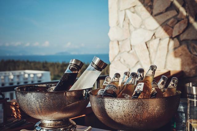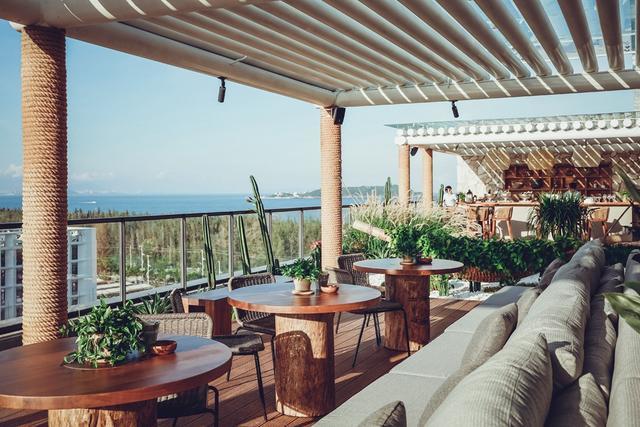 最豪的要数每天下午大堂吧的happy hour,啤酒、软饮、点心、小食全都免费,不过还是不少人会选择颜值爆表的下午茶,毕竟性价比太高了,好拍也好吃。现在屋顶天空吧还没开放,我们有幸破例体验了一次,日落时分登上skybar, 四周被奇异的热带植物包围,遥望远处的蜈支洲岛,聆听大海波涛,俯瞰绿色环绕的泳池,夕阳晚霞,美酒音乐相伴,周杰伦新歌莫吉托传来,相当浪漫。