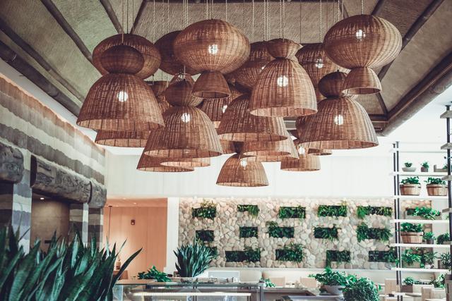 全日餐厅壹厨就像个植物园,高大的木架上养育着品种繁多的蕨类植物、棕榈和兰花,绿意盎然,阳光透过落地 窗映照室内,温暖洋溢。内部大量使用天然有机材料,营造礁石遍布海岸线的联想,从很多角度拍都非常出片。