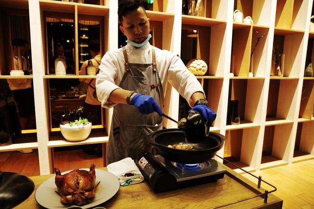 在马来西亚厨师长的主持下,无论是早餐的元气绿色蔬菜麻辣烫,还是午餐的网红黑色巨无霸汉堡,都会让人很快对餐厅留下鲜明的印象。晚餐则更加精致有形,葡白汁玻璃虎虾、鲍汁鲍鱼烩饭、翡翠芙蓉蒸老虎斑鱼球,每一道都显示出厨师的水准,招牌菜火焰八宝农场文昌鸡除了观赏性更强,用一句俗话说真的是入口即化。