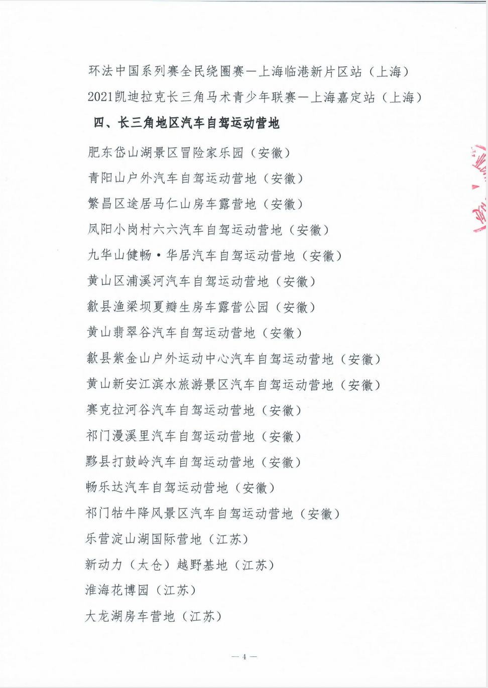 今年,安徽省体育局、浙江体育局、江苏体育局和上海市体育局会同长三角地区体育产业协作会秘书处,再次组织开展了2022年长三角地区体育旅游精品项目申报评选工作,继续向社会大众推广特色的体育旅游项目。经评定审议,最终42个项目成功入选,33个中汽摩联2021年授牌汽车自驾运动营地被认定为长三角地区体育旅游汽车自驾运动营地。